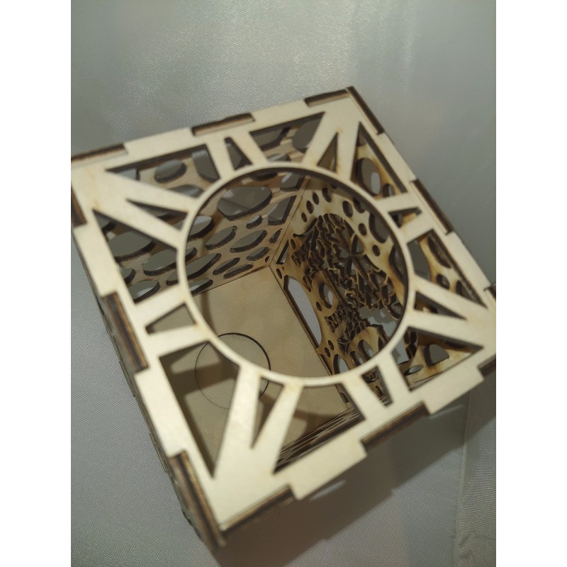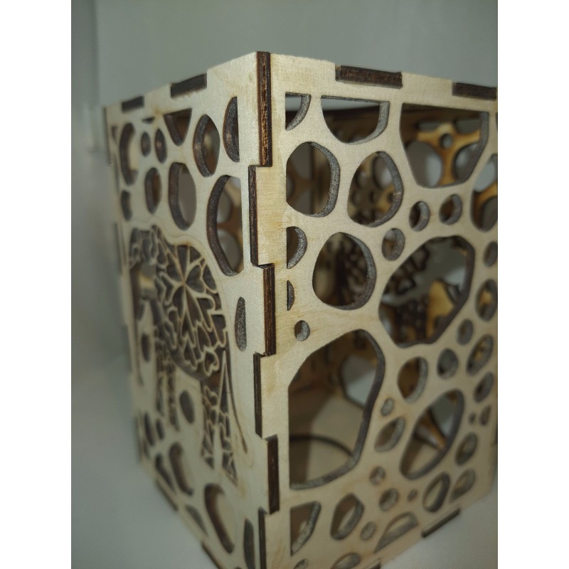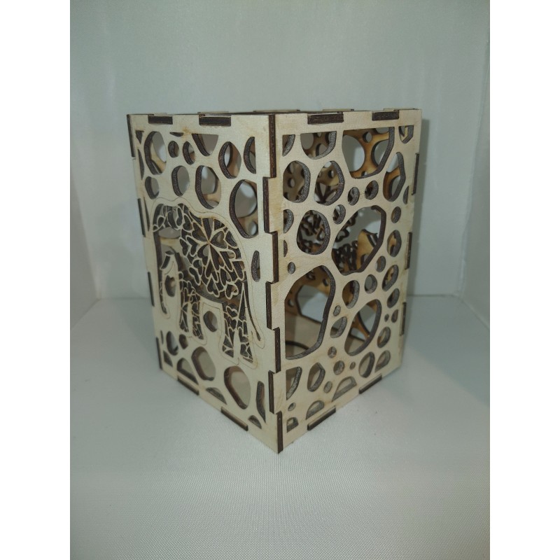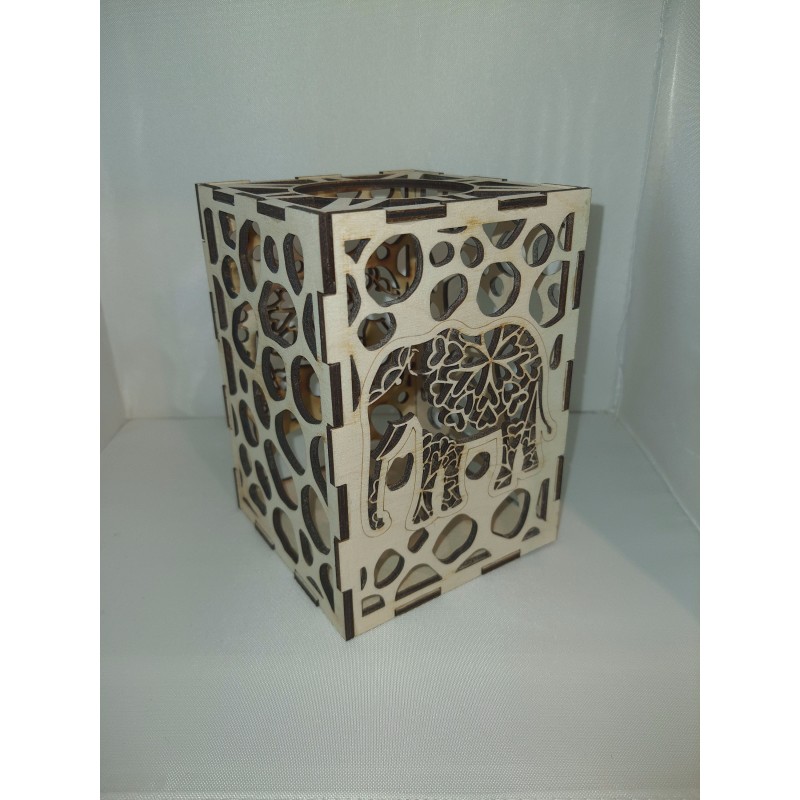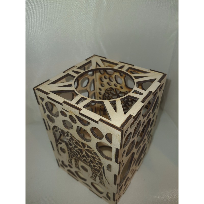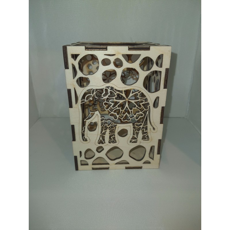 Elephant tealight holder - a beautiful large laser cut and hand finished tea light holder with mandala style elephant cut out. Made by myself from 3mm plywood.