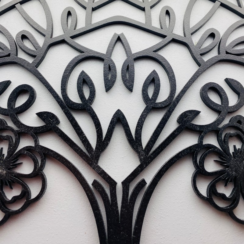 Tree of Life plaque - this beautiful wooden wall plaque features a Tree of Life design, is laser cut from 3mm ply and is painted silver grey and black. It is 29cm in diameter and has a hanging hook on the reverse.